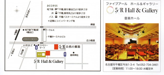 ●会場 5/R Hall & Gallery 音楽ホール(愛知県名古屋市千種区) Tel:052-734-3461