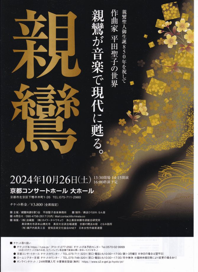 親鸞和讃を歌う会合唱団の参加者を募集します。第9回開催となりますのは、山口県岩国市のシンフォニーホールです。本番は、来年5月9日です。3月から練習会を3回、平田聖子の指揮とお話で行います。是非一緒に歌いましょう。本番は、皆さんのステージと、プロ演奏者のステージを客席にて聴いていただく部とあります。ご応募お待ちしております。